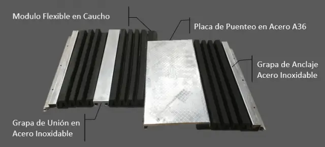 flexibles de caucho y placas de puenteo metálicas ancladas a los módulos flexibles.