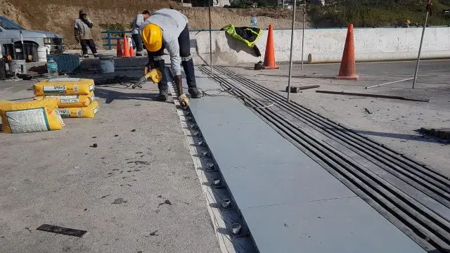 flexibles de caucho y placas de puenteo metálicas ancladas a los módulos flexibles.